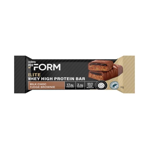 Coles Perform Elite Whey High Protein Bar Milk Choc Fudge Brownie | 60g