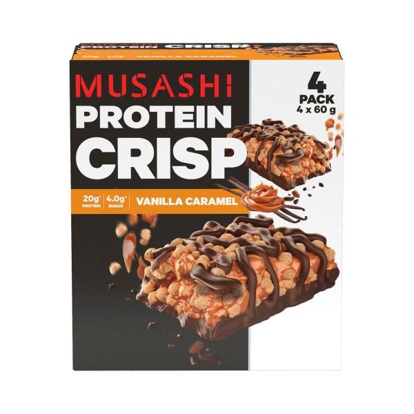 Musashi Protein Crisp Bars Vanilla Caramel 4 Pack | 240g