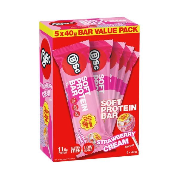 BSc X Chupa Chups Soft Protein Bar Strawberry Cream Multipack 5 Pack | 200g